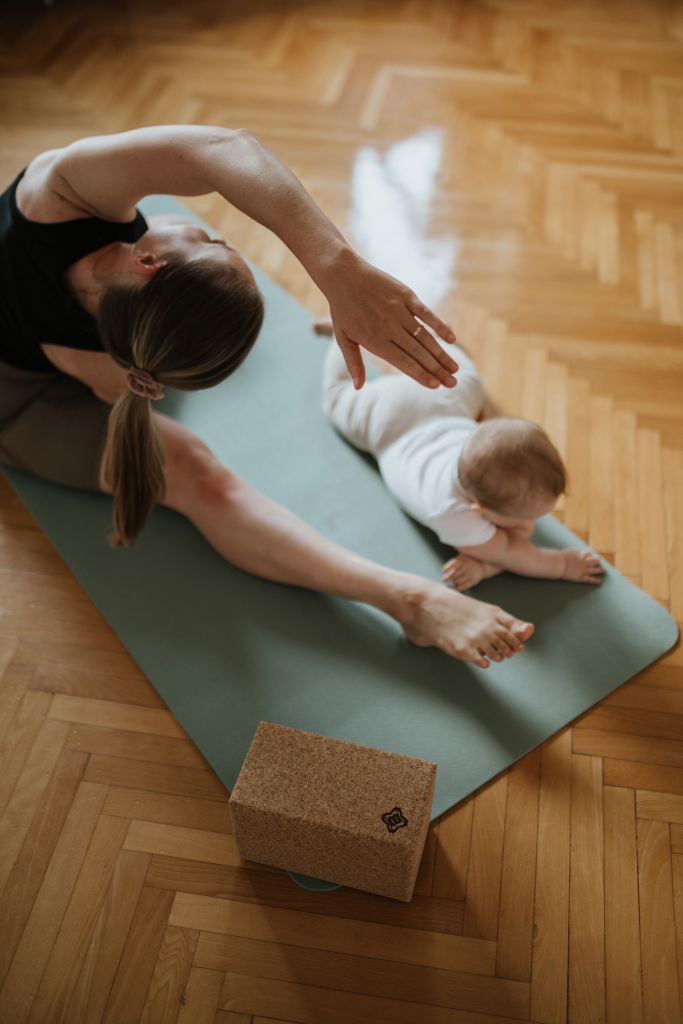 Vadba po principi čuječnosti pod strokovnim nadzorom certificiranih inštruktoric pilatesa, vodenih vadb ter vadbe v nosečnosti in poporodne vadbe.
